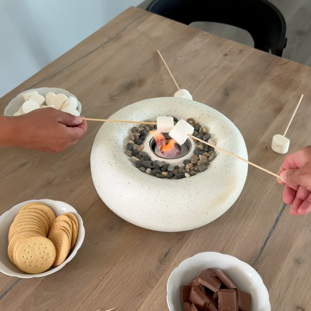 Enten du vil samle flokken rundt ilden i stua, eller rett og slett bare har lyst på stilig bordpryd, så har en av våre bordpeiser alle behovene dine dekket. Med rentbrennende bioetanol som brensel slipper du også å tenke på sot, røyk og vonde avgasser fra produktene våre. Hvem sa at man måtte ut for å grille marshmallows?